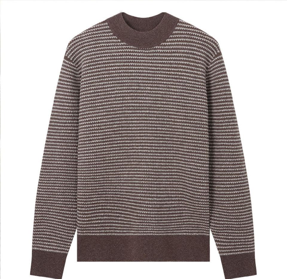 Wholesale Custom Men's Casual Striped Pullover Sweater Winter Thick Knitted Crew Neck Fashionable Cotton Hoodie Sweatshirt