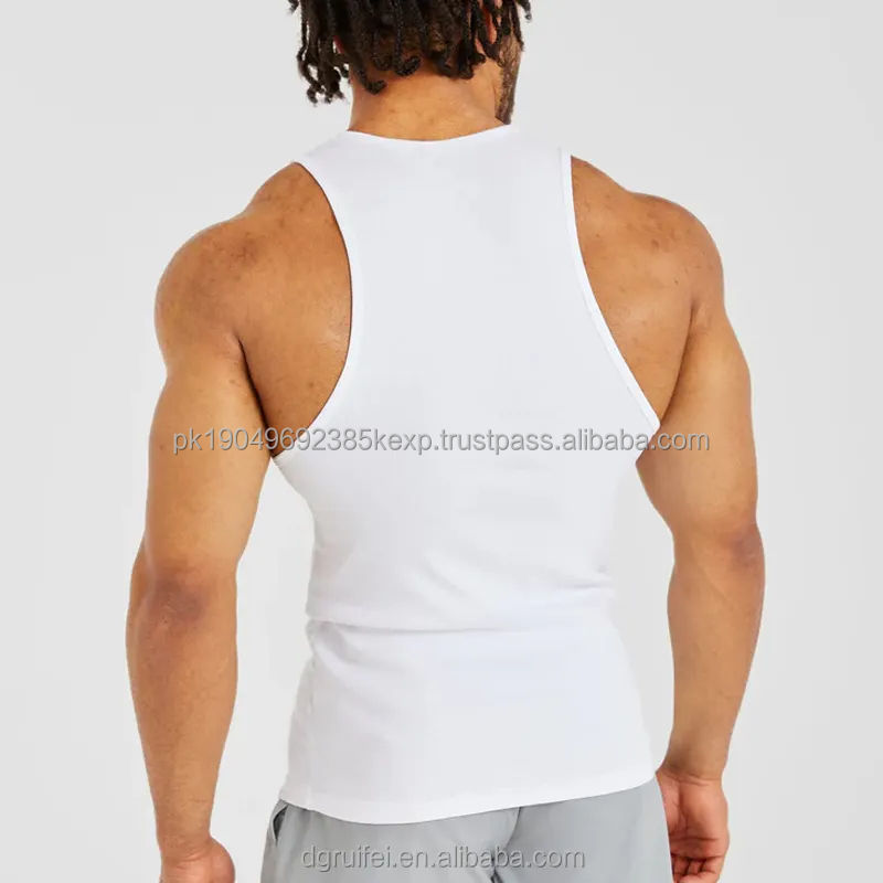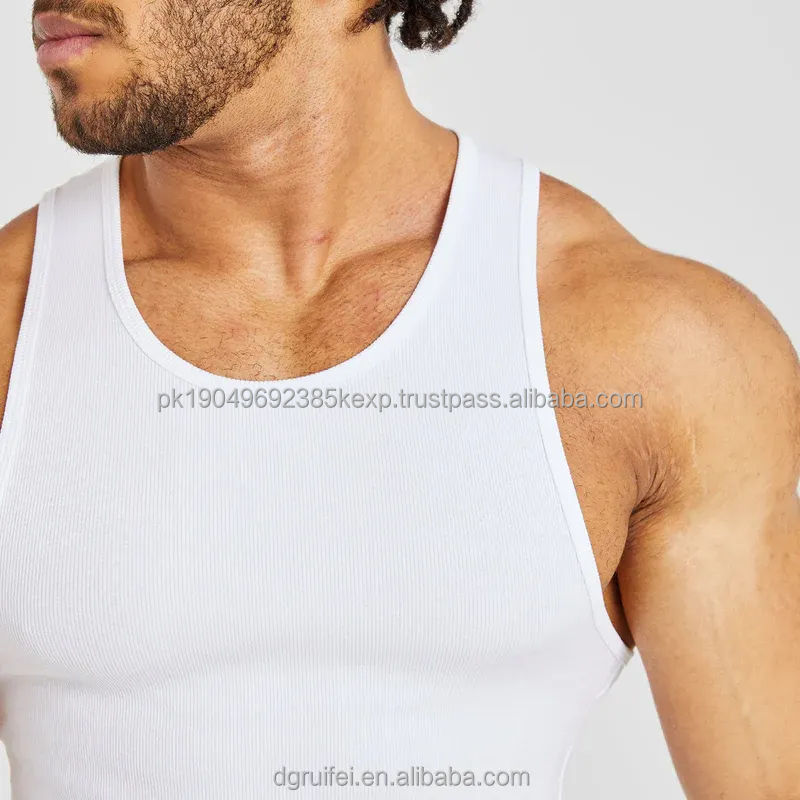 Wholesale Custom Men's Cotton White Seamless Gym Tank Tops Vest Breathable Fitness Bodybuilding Undershirt
