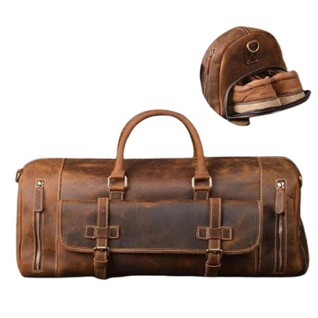 Wholesale Custom Men's Leather Weekender Backpack Duffle Bag Portable Overnight Travel Duffel Bag for Gym Use With OEM