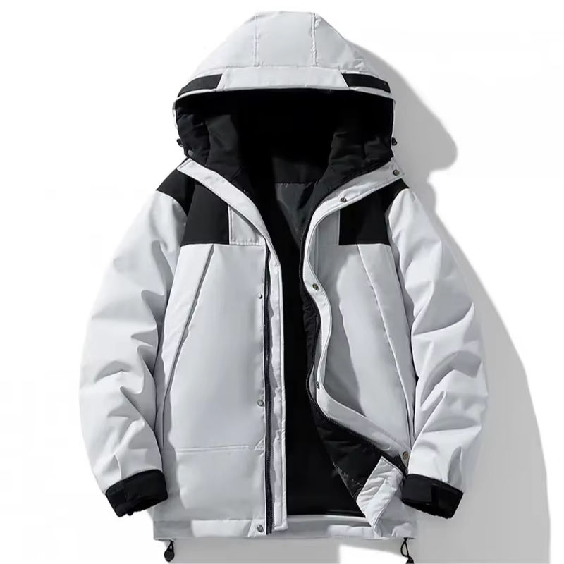 Wholesale Custom Men's Puffer Jacket New Design Fashion Quilted Bomber Jacket Hood White Waterproof Bubble Leather Plus Size