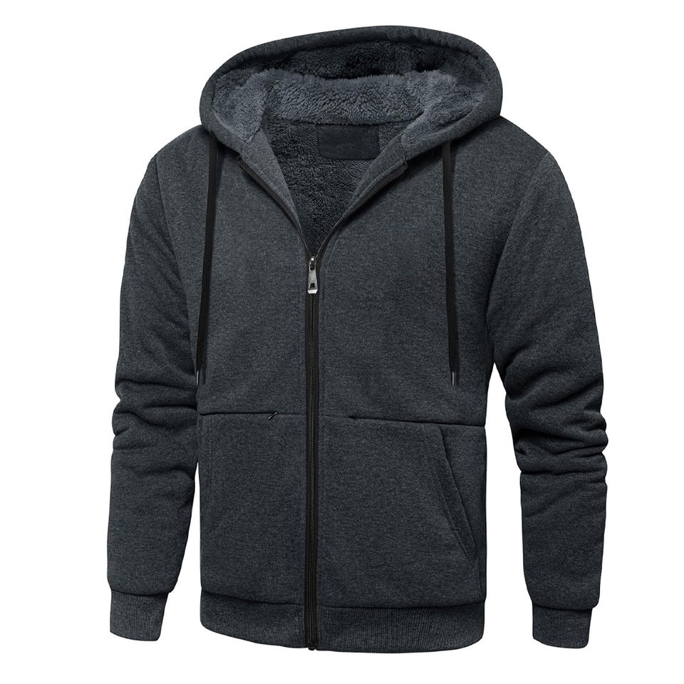 Wholesale Custom Men's Solid Knitted Thermal Full Zip Winter Pullover Hoodie 100% Cotton Thick Faux Fur Fleece Lining Warm