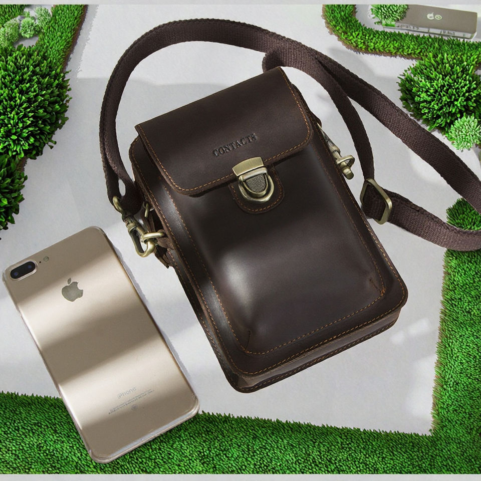 Wholesale Custom Mini Sling Messenger Phone Bag for Men Convertible Belt-Loop Waist Bag Vintage Small Leather Crossbody Phone