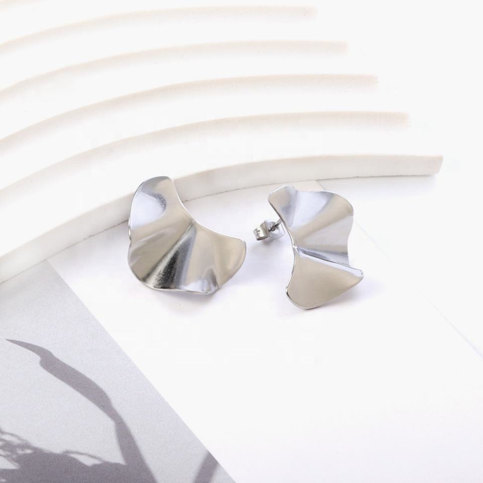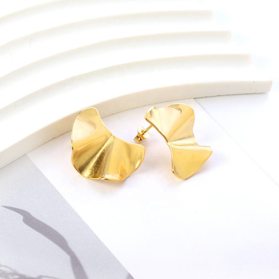 Wholesale Custom Minimalist Stainless Steel Earrings 18K Gold Plated Women Irregular Glossy Bump Fan Shape Stud Earrings