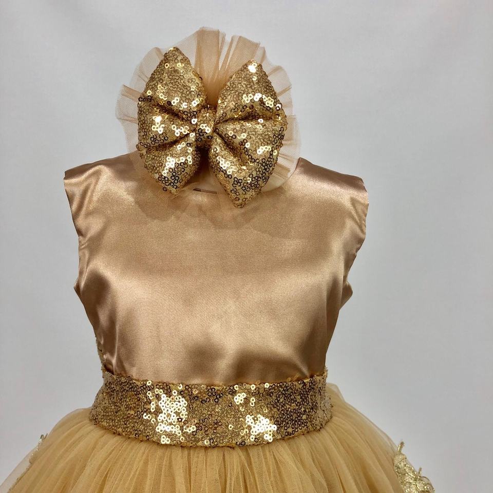 Wholesale Custom Modern Clothes Luxury Newborn New Design 1 Years Birthday Party Girls Gold Sleeveless High Quality Baby Dress