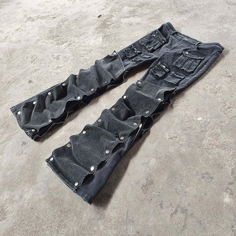 Wholesale Custom Multi Pockets Streetwear Distressed Slim Fit Denim Cargo Baggy Jeans for Men