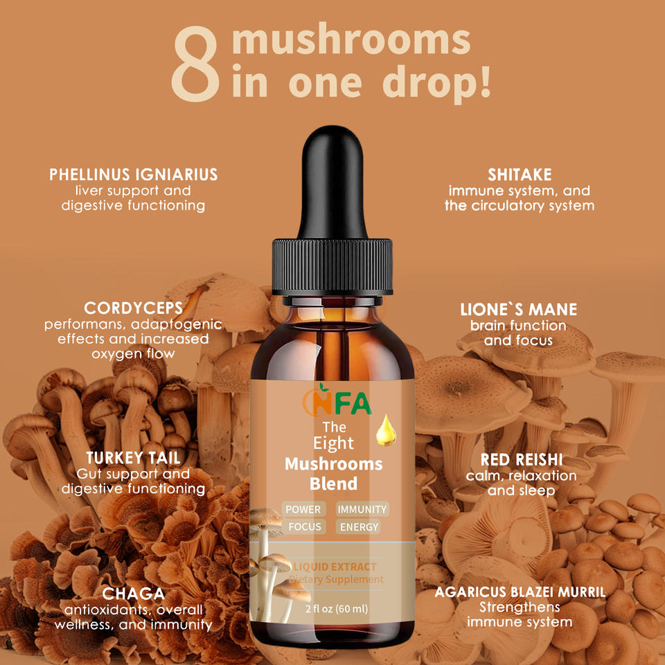 Main Ingredient:Red Reishi, Cordyceps, Chaga, Lion's Mane, Shiitake, Turkey tail, Maitake, Agaricus Blazei Murrill