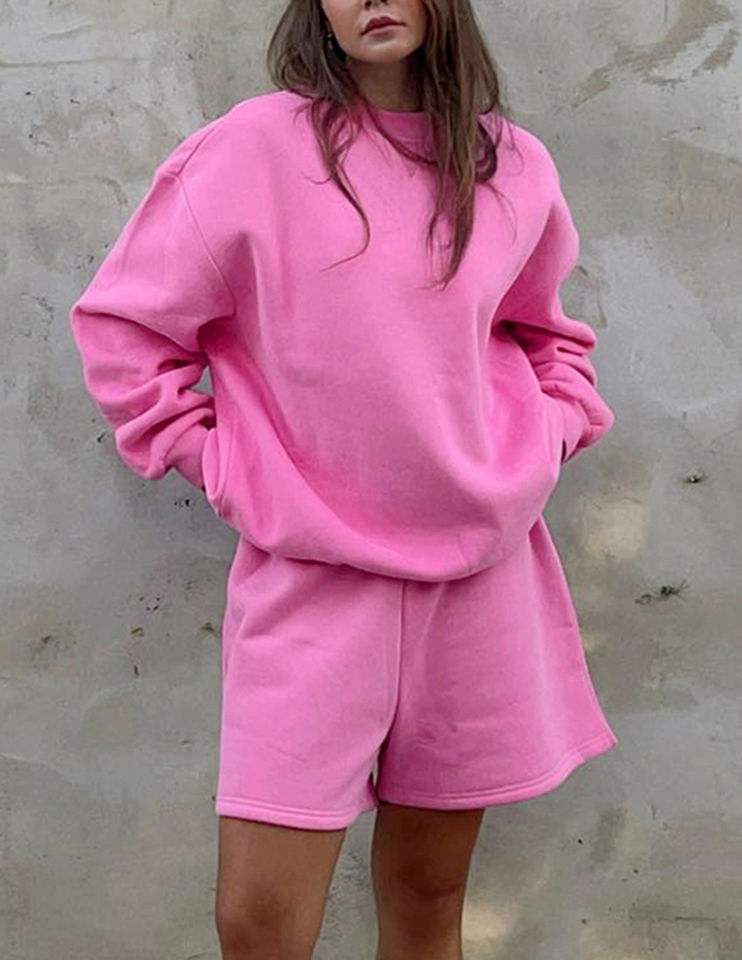 Wholesale Custom New Fashion pink Sweatshirts and Shorts Set Women Cotton Gym Casual Women's Hoodies and Shorts Set high QUALITY