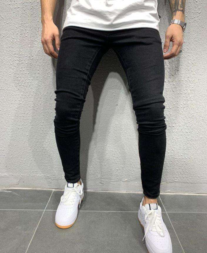 Wholesale Custom New Men Elastic Denim Solid Color Casual Slim Jeans Mid Waist Softener Comfortable Outdoor Pencil Long Pants