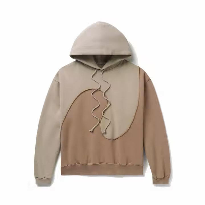 Wholesale Custom Oversized French Terry Custom High Quality Embroidered Logo Panelled Cotton Fleece Pullover Hoodie for Men