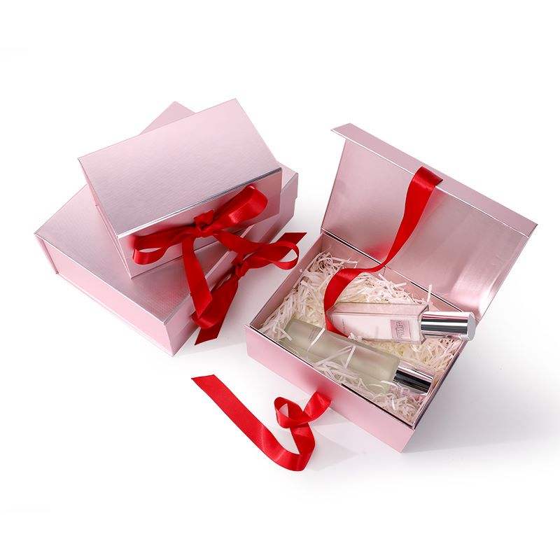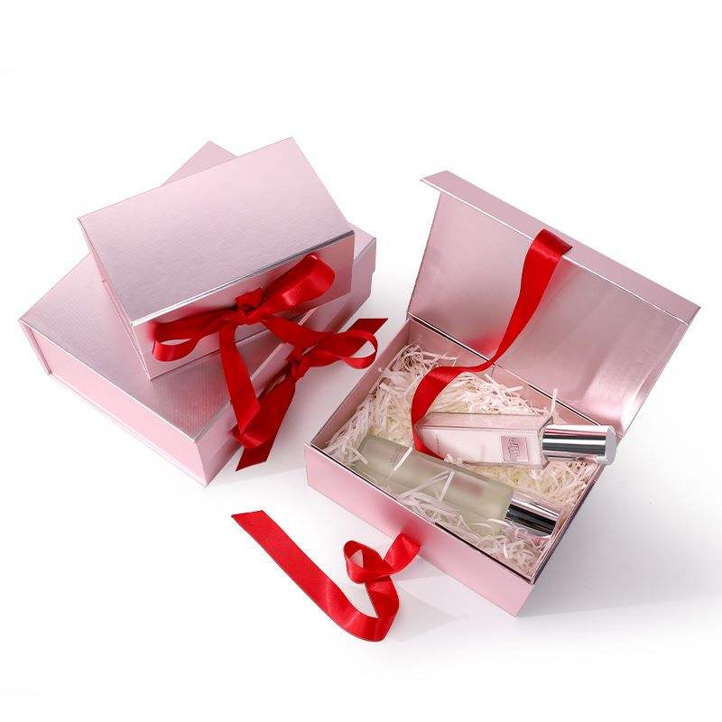 Wholesale Custom Printed Recycled Materials Luxury Cardboard Gift Packaging Box Folding Design Ribbon Flat Pack Embossed Matt