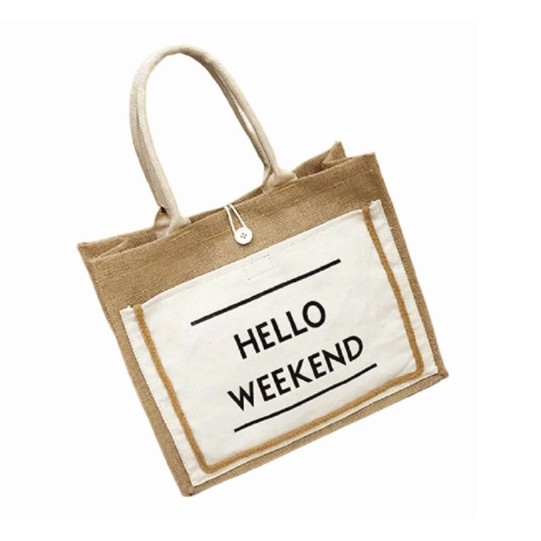 Product name:black hello weekend jute bag