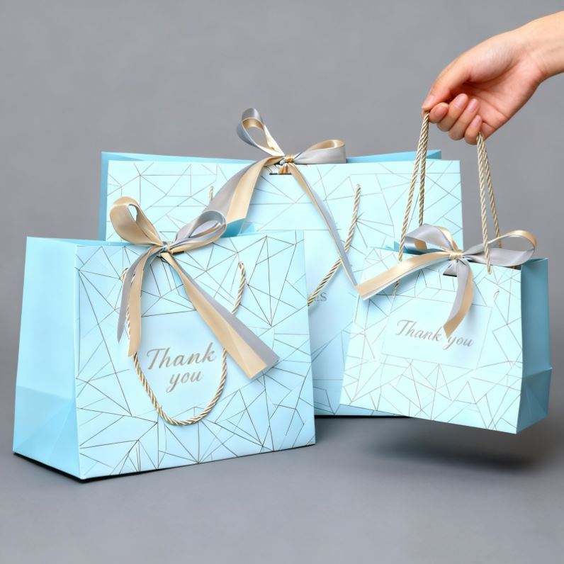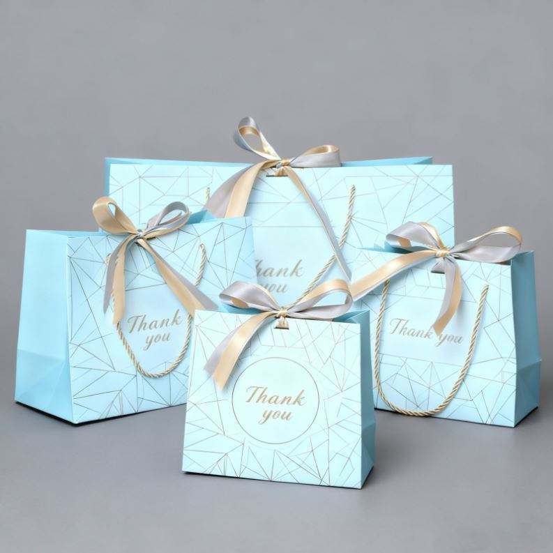 Wholesale Custom Printed Logo Design Promotion Luxury Gift Shopping Clothing Retail Blue Jewellery Paper Bag With Handle
