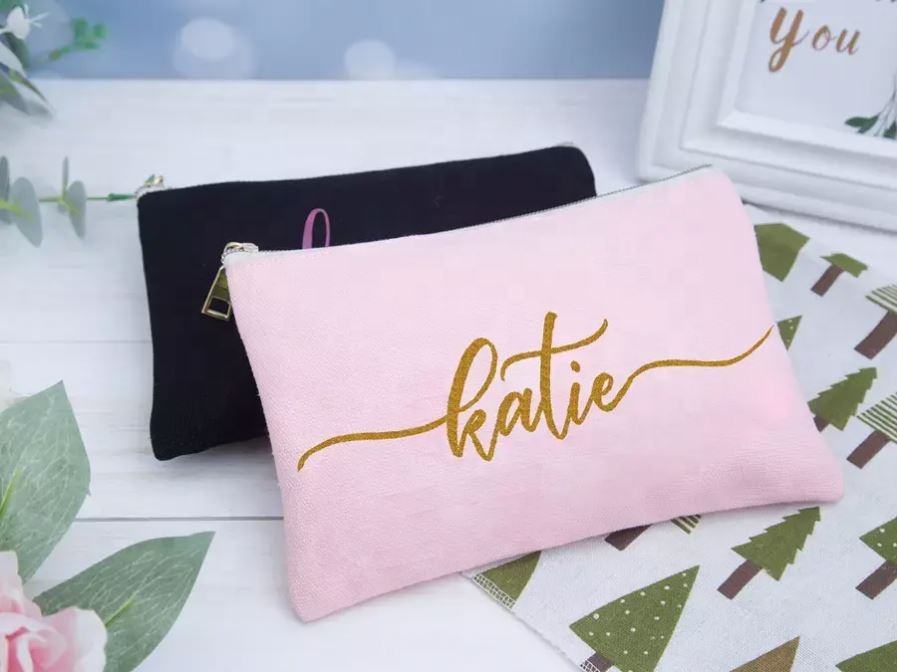 Wholesale Custom Printed Logo Reusable Canvas Cotton Makeup Cosmetic Bags Blank Plain for Toiletry Pouch Zipper Closure Letter