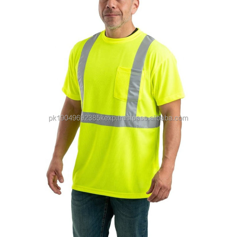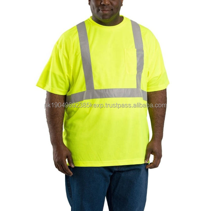 Wholesale Custom Quick-Drying Hi Vis Men's Construction Short Sleeve Work Shirt Reflective Green Safety T-Shirts