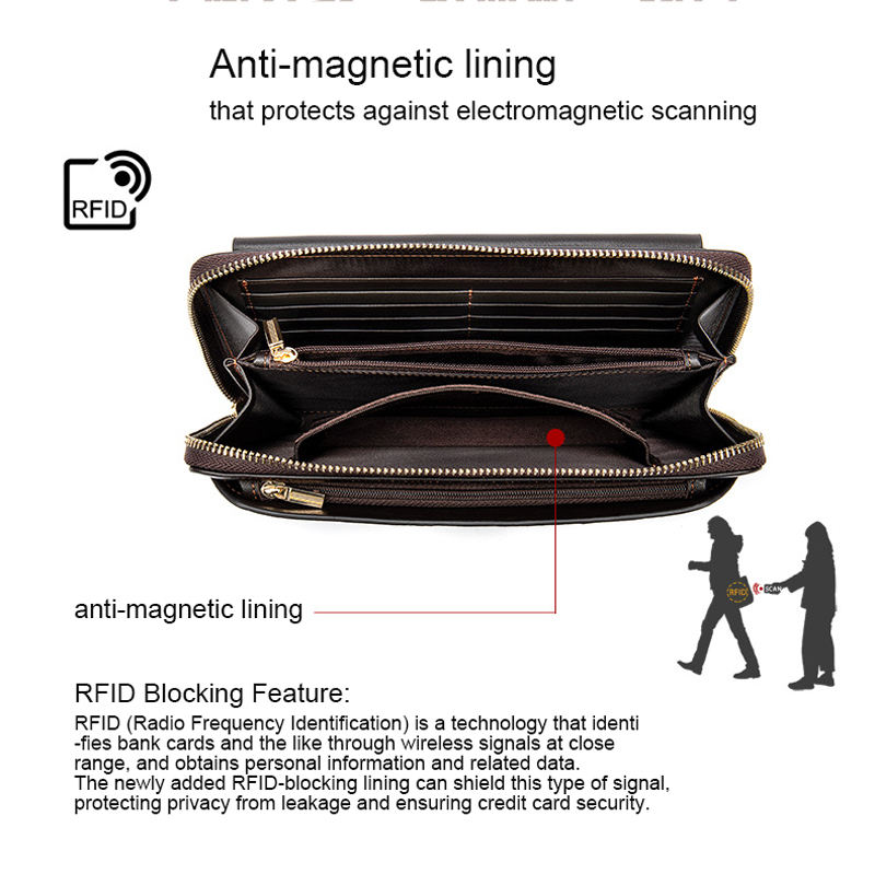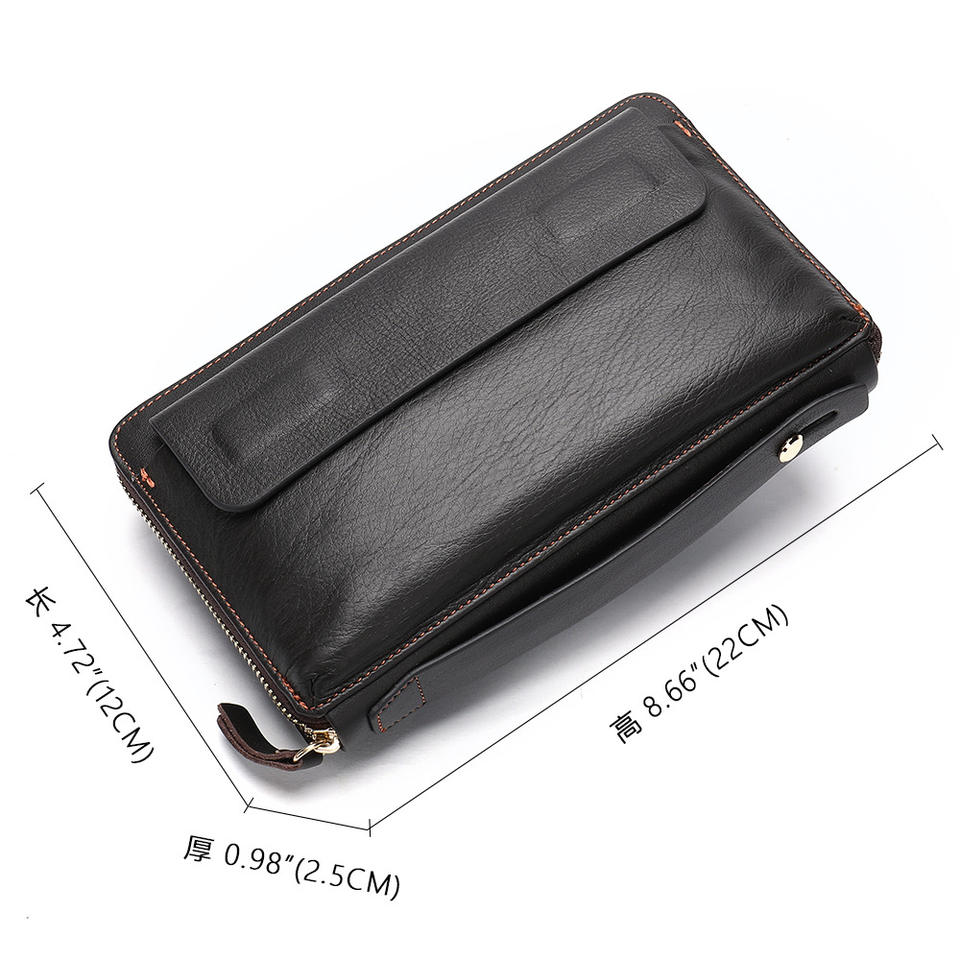 Wholesale Custom Lightweight RFID Blocking Zipper Fashion Men's Soft Genuine Leather Handbag Long Wallet Business Clutch Bag