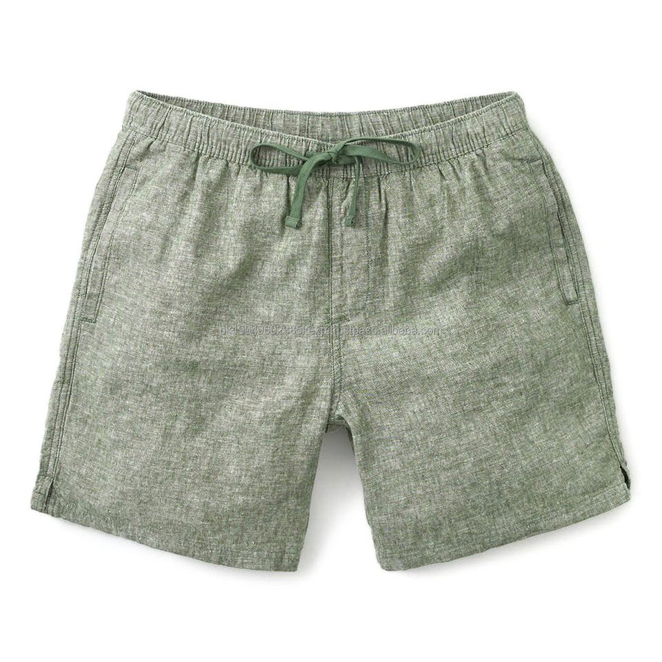 Wholesale Custom Solid Blank 75% Cotton 25% Linen Woven Fabric Elastic Waist Durable Super Soft Men's Pockets Casual Shorts