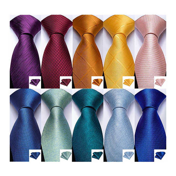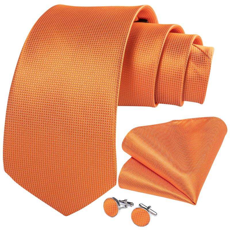 Wholesale Custom Solid Color Tie Orange Mens Silk Neck Ties and Pocket Square
