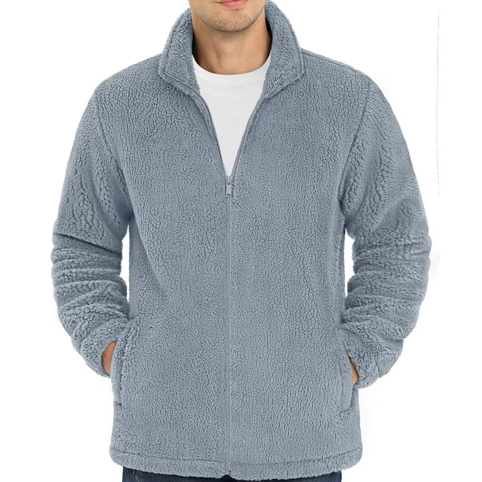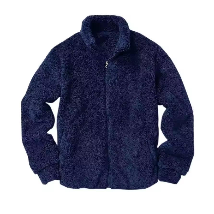 Wholesale Custom Solid Color Zipper Loose Long Sleeve Sherpa Winter Coat Polar Fleece Jacket Street Fashion Jackets for Men