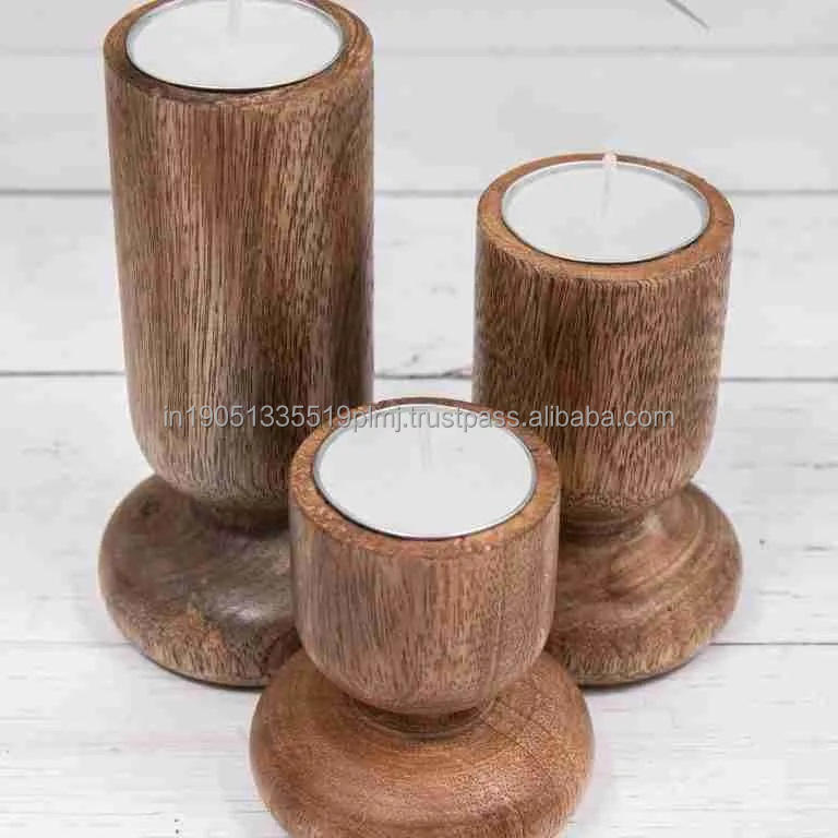 Wholesale Custom Solid Wood Candle Holder Set of 3 Natural Mango Wood Tealight Holder For Home & Garden Decorative Candle Holder