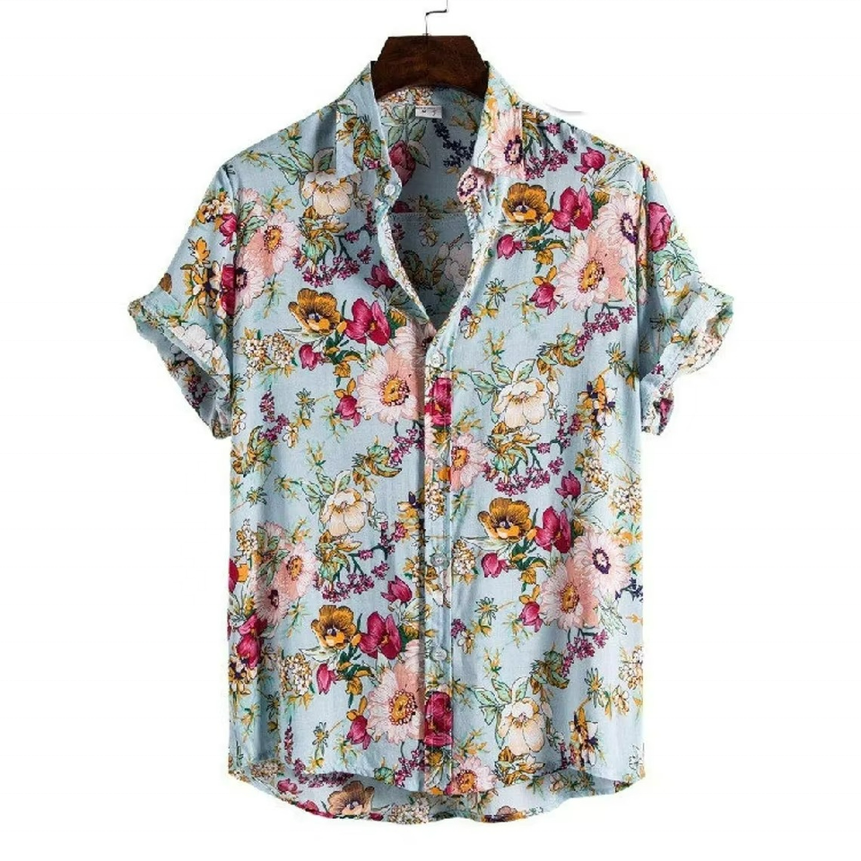 Wholesale Custom Summer Formal Hawaiian Shirts Satin Floral Printed Quick Dry Men Streetwear Stylish Holiday Beach