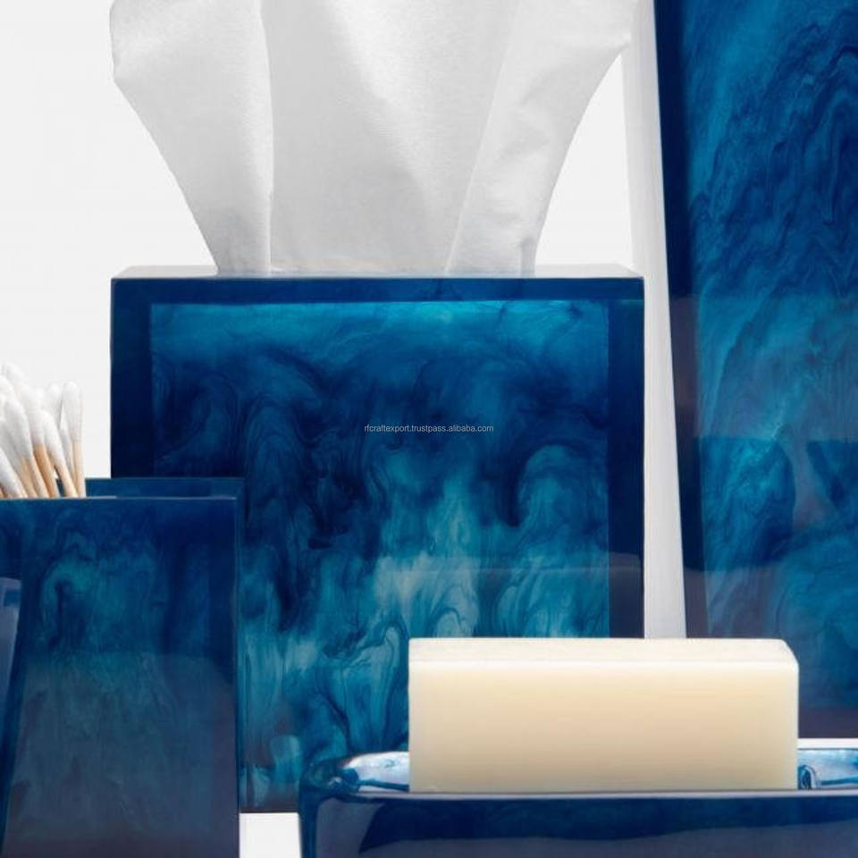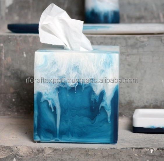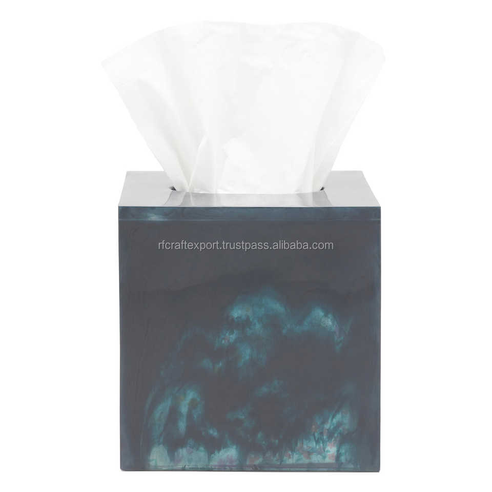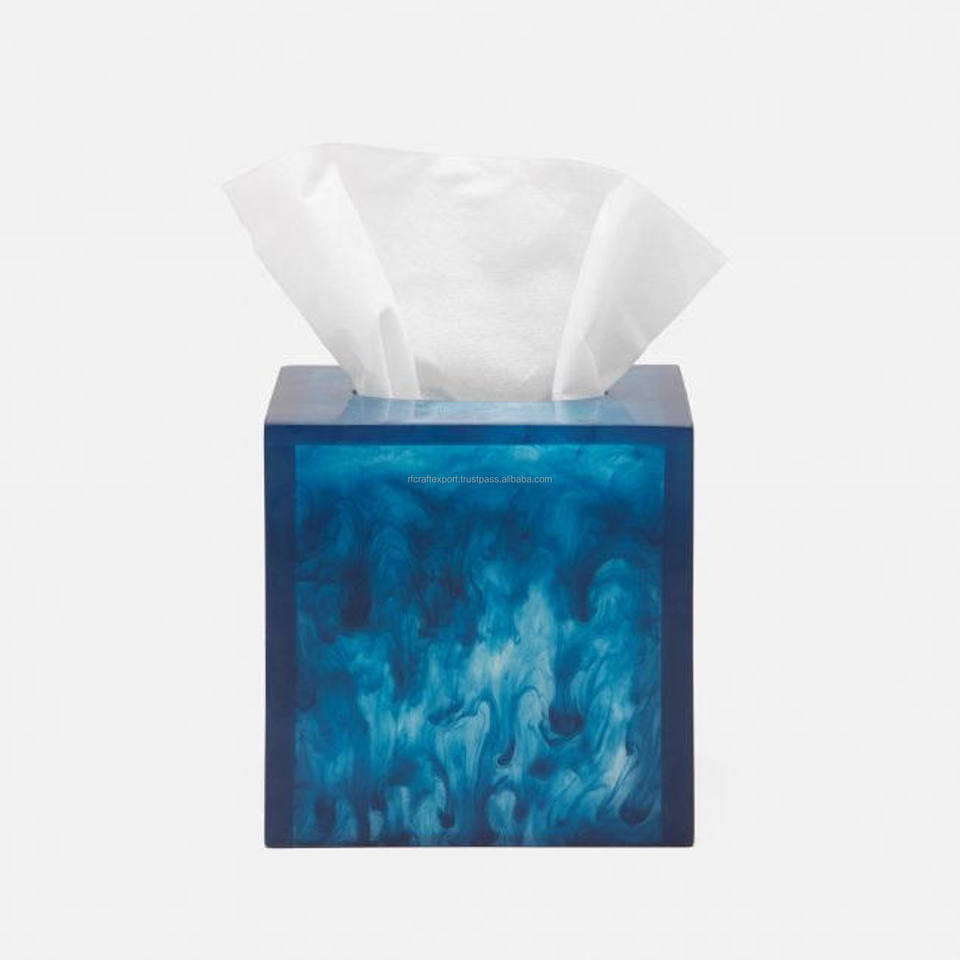 Wholesale Custom Square Blue Swirled Acrylic Tissue Box Cover Travel Toilet Paper Cube Box for Home Bathroom Square Blue Tissues