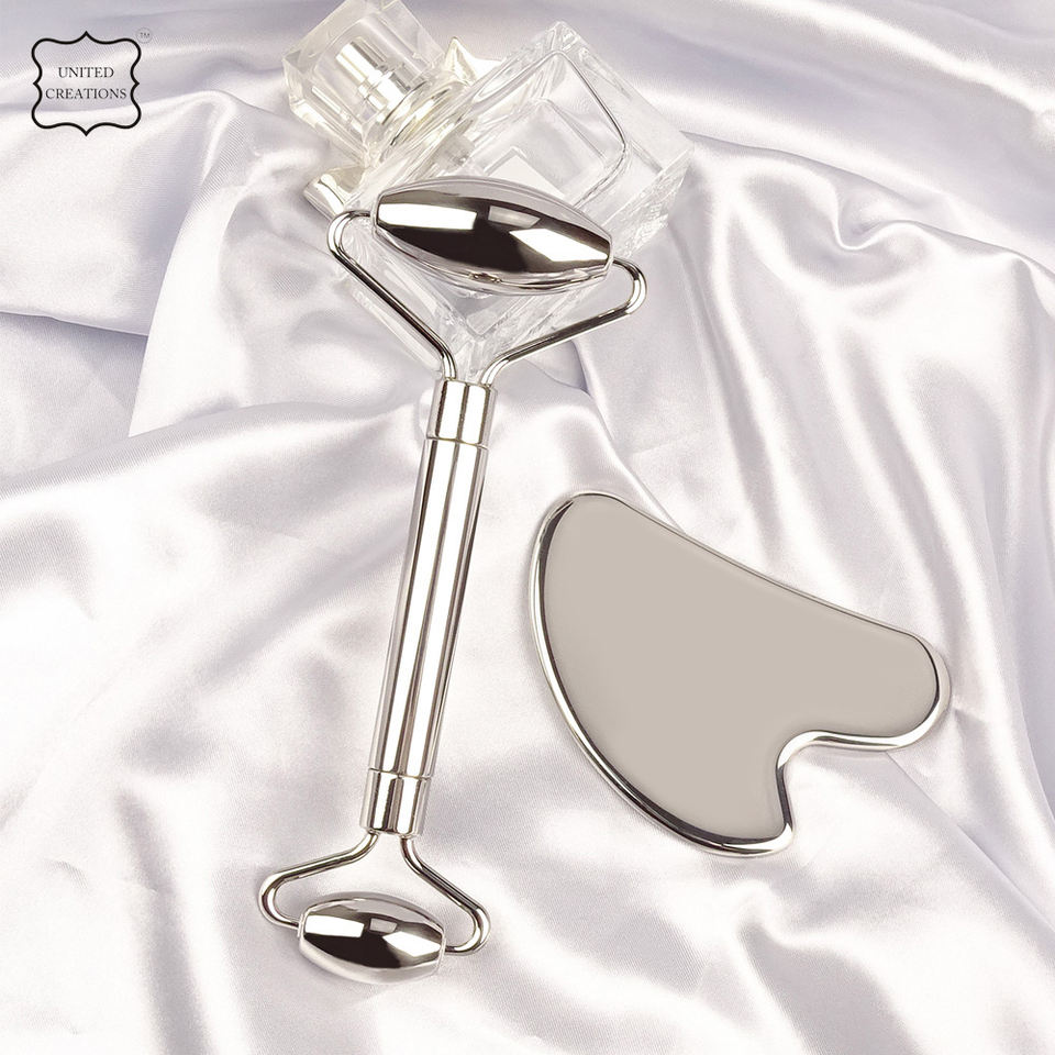 Wholesale Custom Stainless Steel Gua Sha Set Facial Guasha Roller Skincare Tool for Massaging