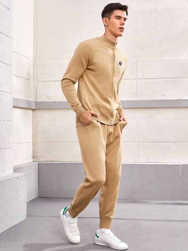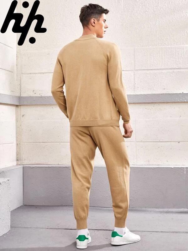 Wholesale Custom Stand Collar Raglan Sleeve Cardigan & Knit Pants Tracksuit Skinny Tracksuit Men Plain Slim Fit Male Sweatsuit