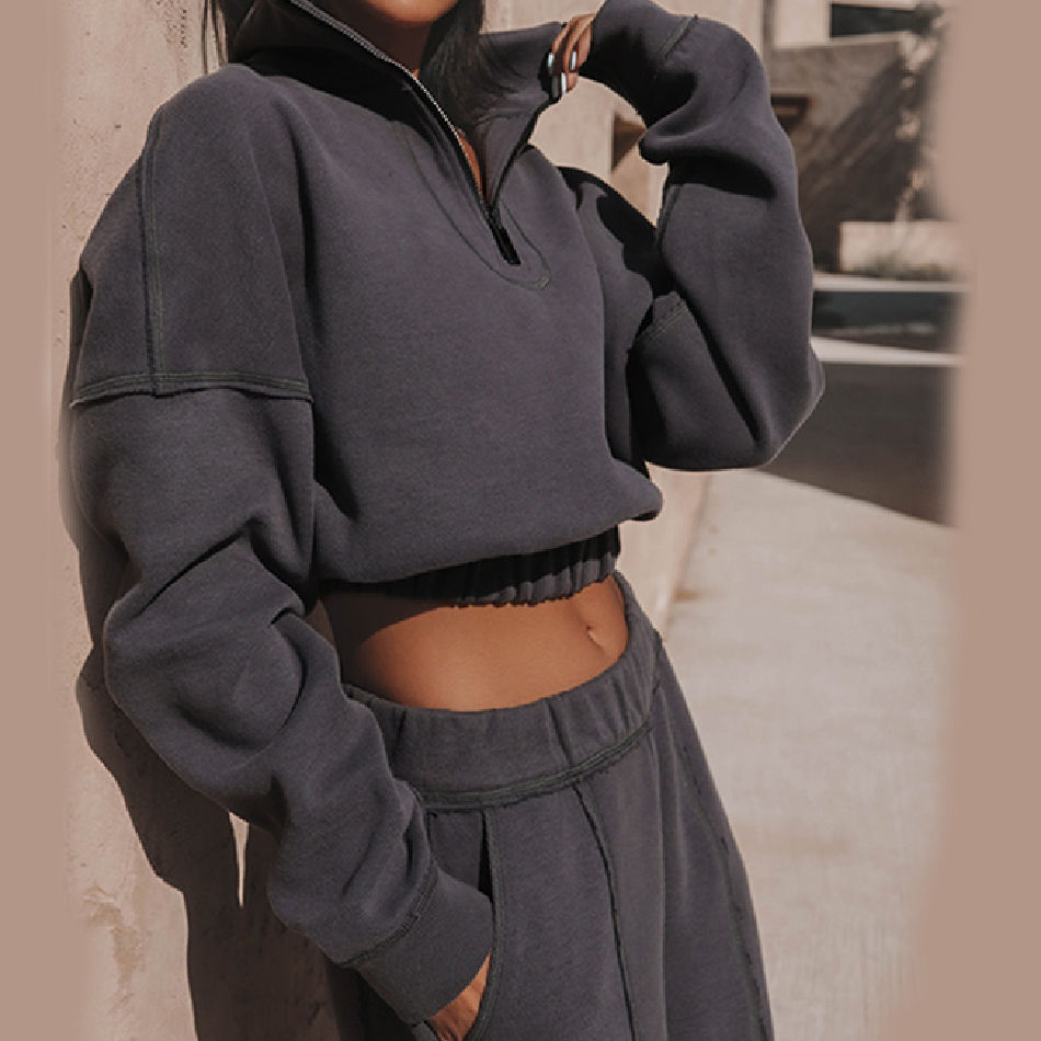 Wholesale Custom Streetwear 3D for Winter Breathable Heavyweight Oversized Fleece Drawstring Closure Crop Sweatshirt Set