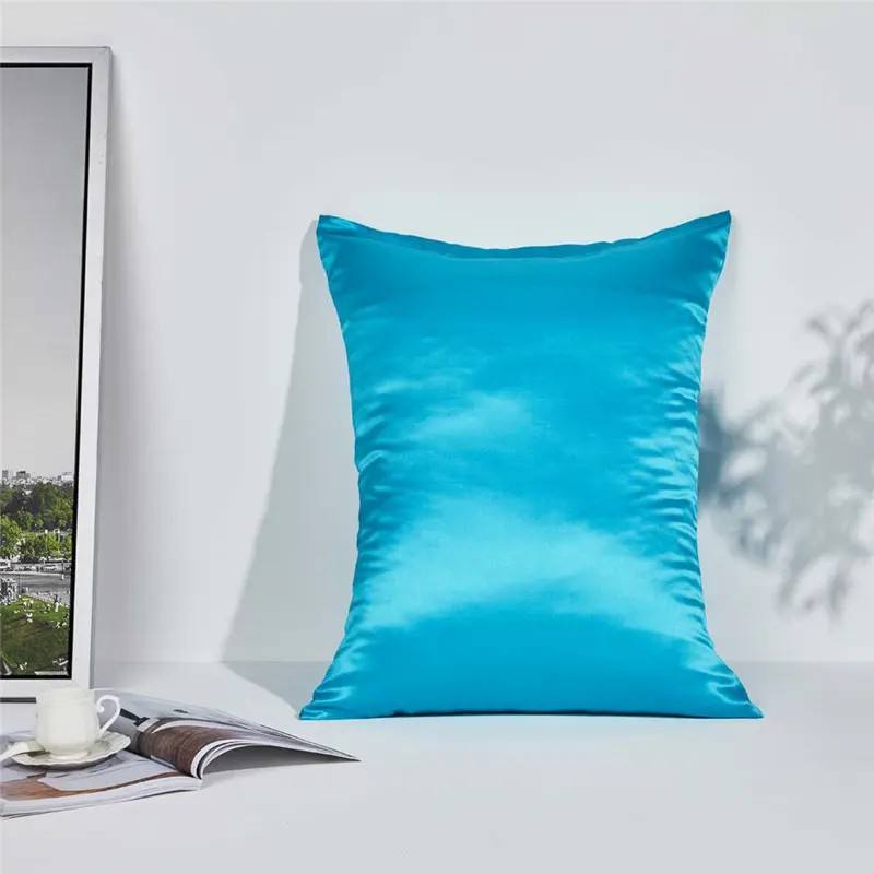 Wholesale Custom Super Soft Silky Satin Pillow case 100% Polyester Blue Satin Pillowcase with Zipper