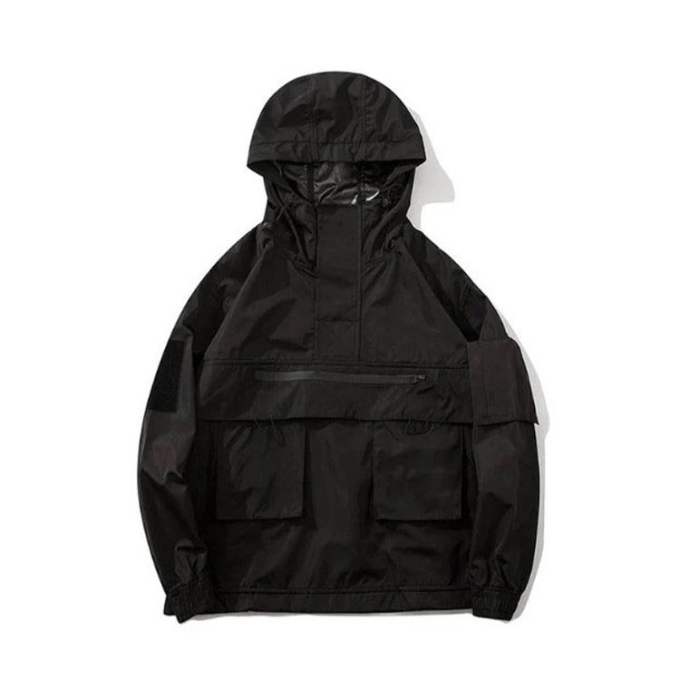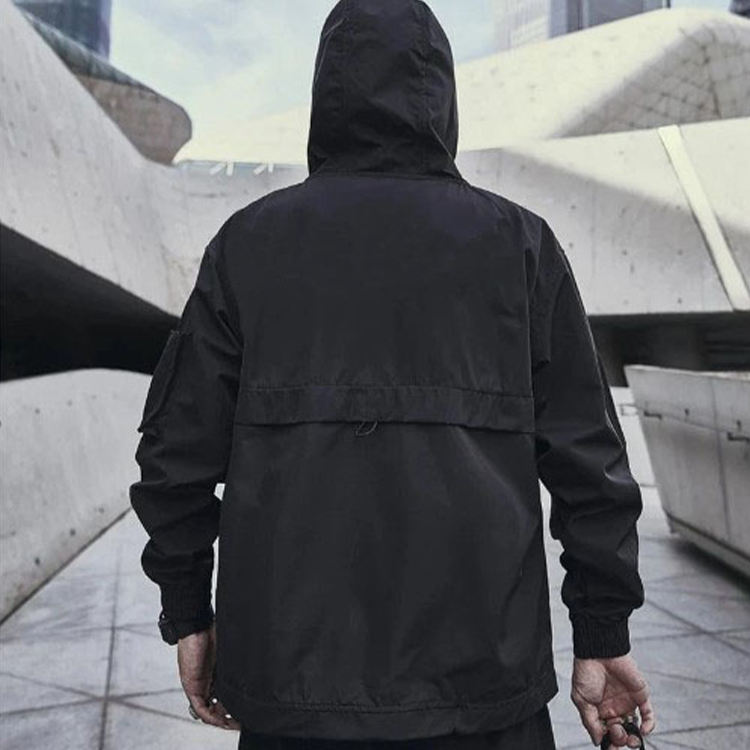 Wholesale Custom Techwear Fashion Jacket for Men Breathable Black Hooded Waterproof Streetwear Windbreaker Jacket OEM