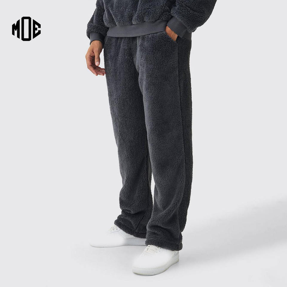 Wholesale Custom Teddy Borg Joggers Sweatpants for Women and Men Soft Comfortable Straight Leg Pants with Embroidery Decoration