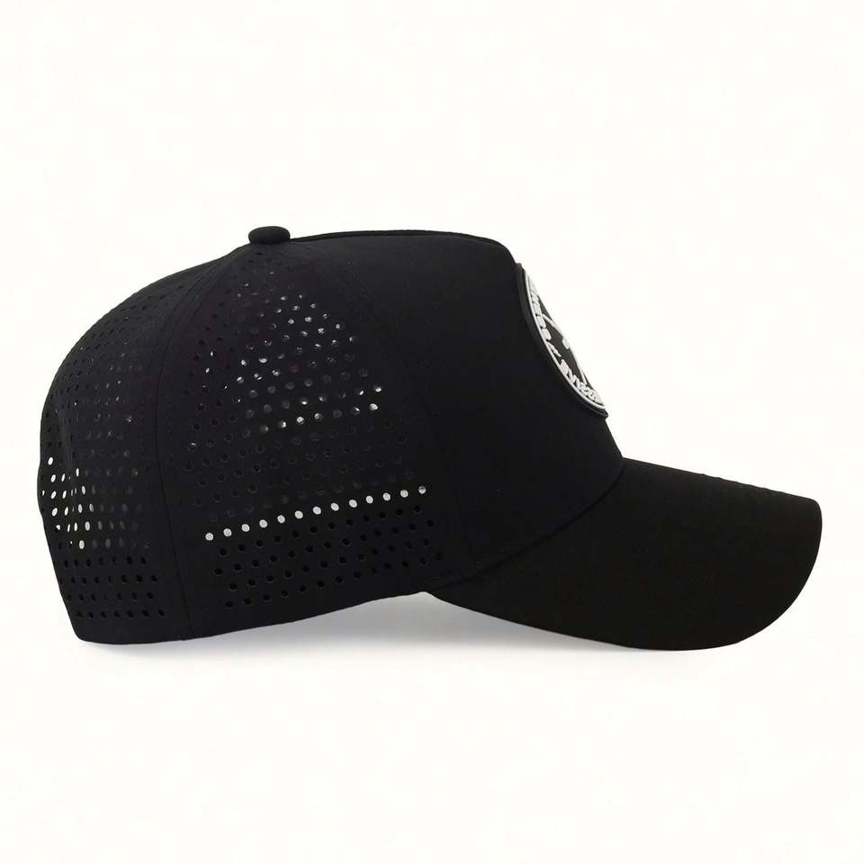 Wholesale Custom Unstructured 5 Panel Frame Baseball Cap Laser Cut Hole Rubber PVC Logo Common Adjustable Professional OEM