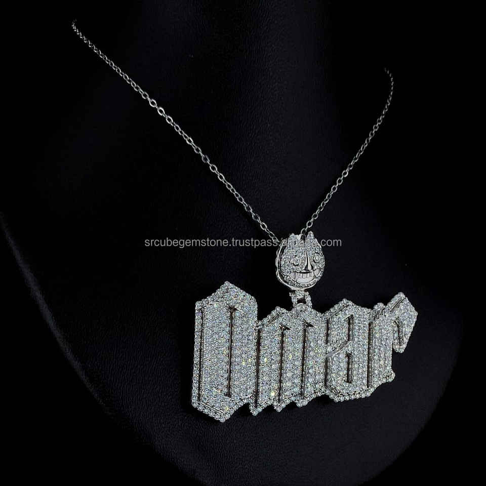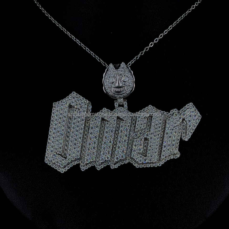 Wholesale Custom VVS Moissanite Diamond Letter Pendant 925 Silver Cuban Link Necklace with Gold Plating Hip Hop Style Pendants
