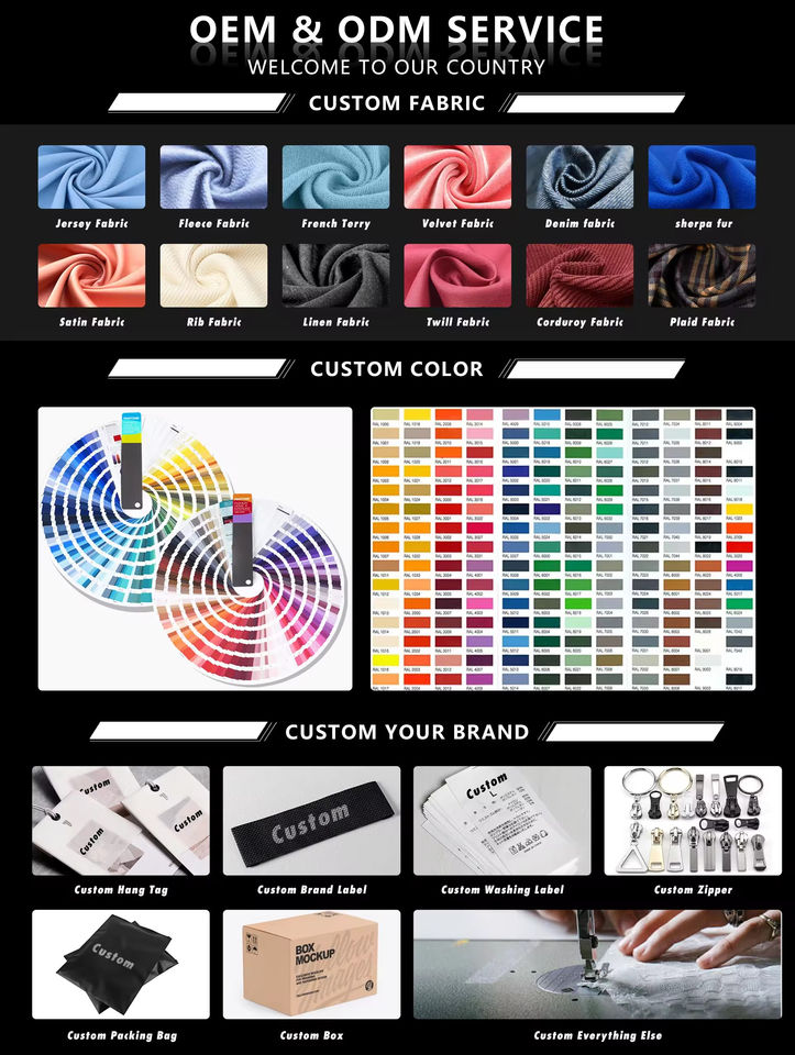 Front, back, Left Sleeve, Right Sleeve, lower hem, back neck