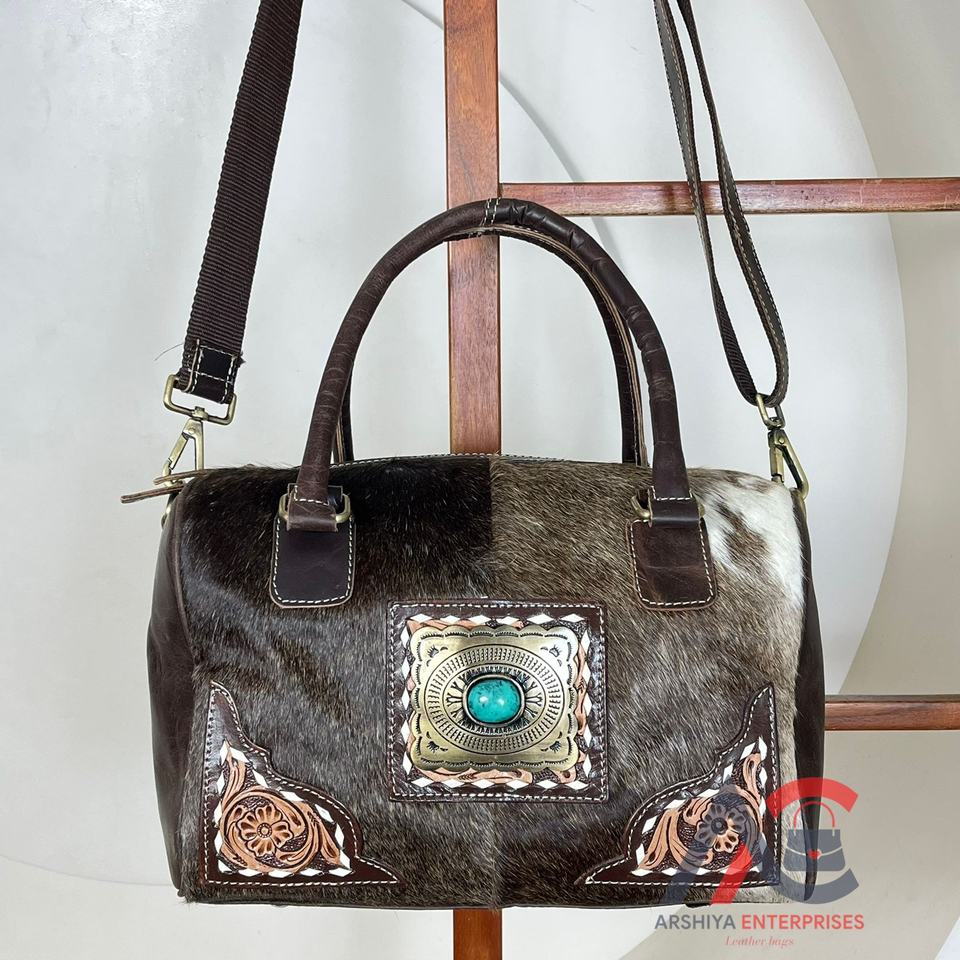 Hand Tooled Cowhide Leather Mini Duffel Bag