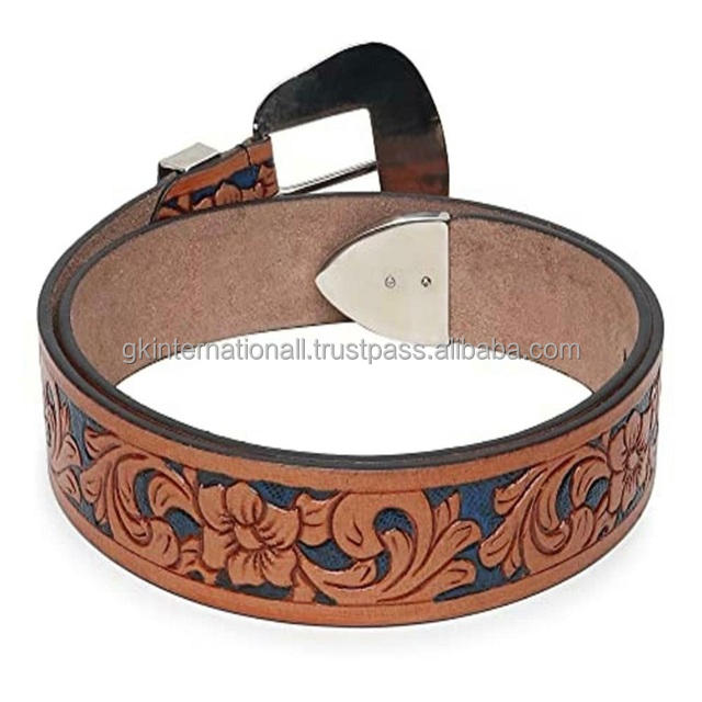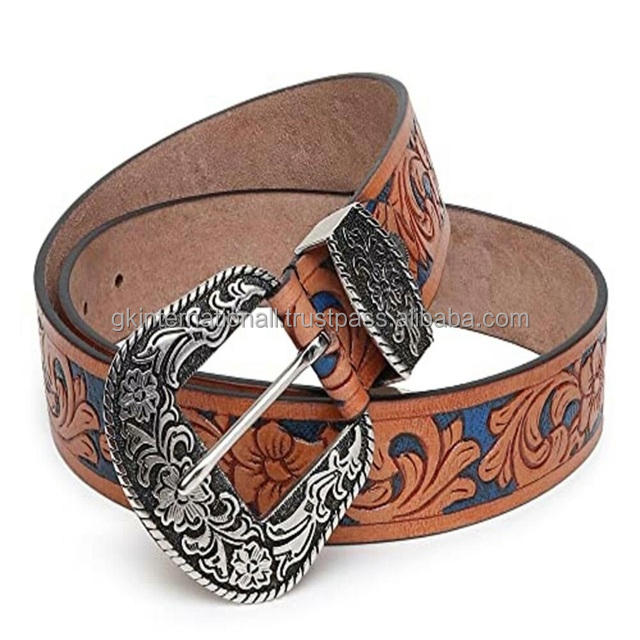 Wholesale Custom Western Dress Buckle Tooled Belt for Men Women Cowgirl Cowboy Belt with Three Piece Designer Buckle Set