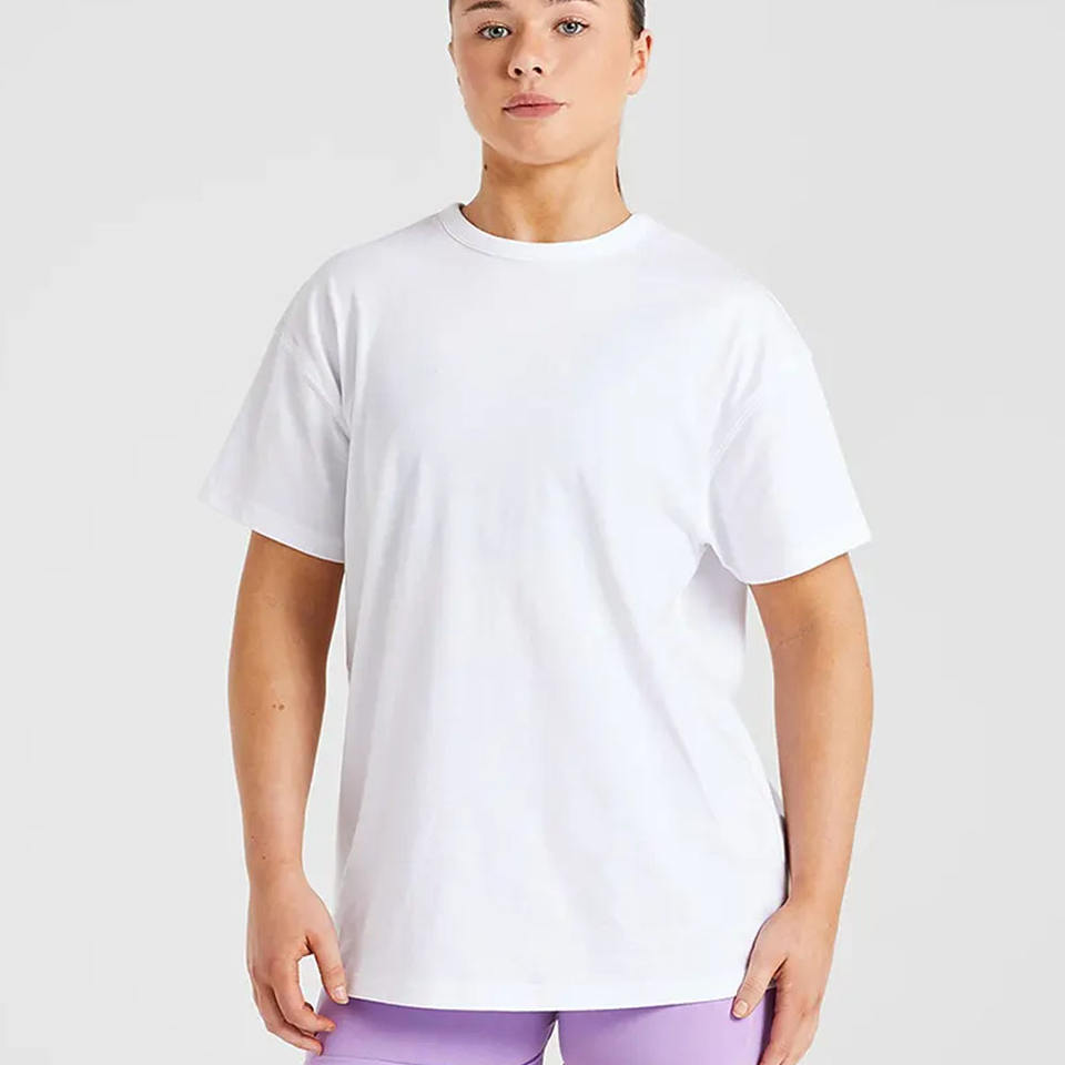 Wholesale Custom White Oversize Women's Athletics T Shirt Short Sleeves Soft Lightweight & Designer Relaxed Fit Gym Workout Tee