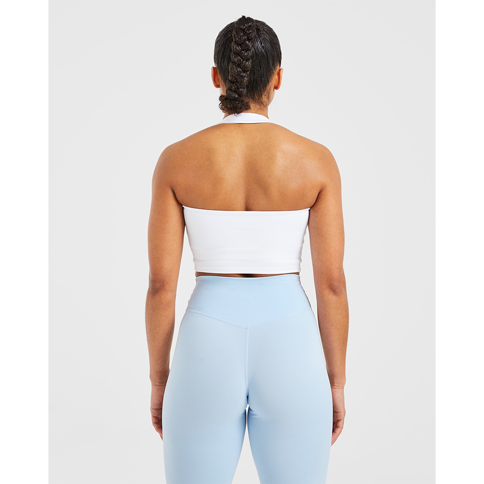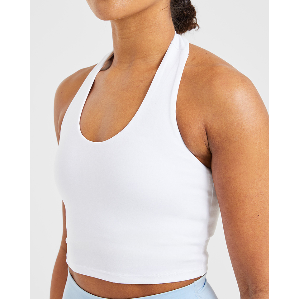 Wholesale Custom White Women's Halternack Crop Top Stretchy And Buttery Soft Lightweight Fitness Workout Crop Top Tees for Women