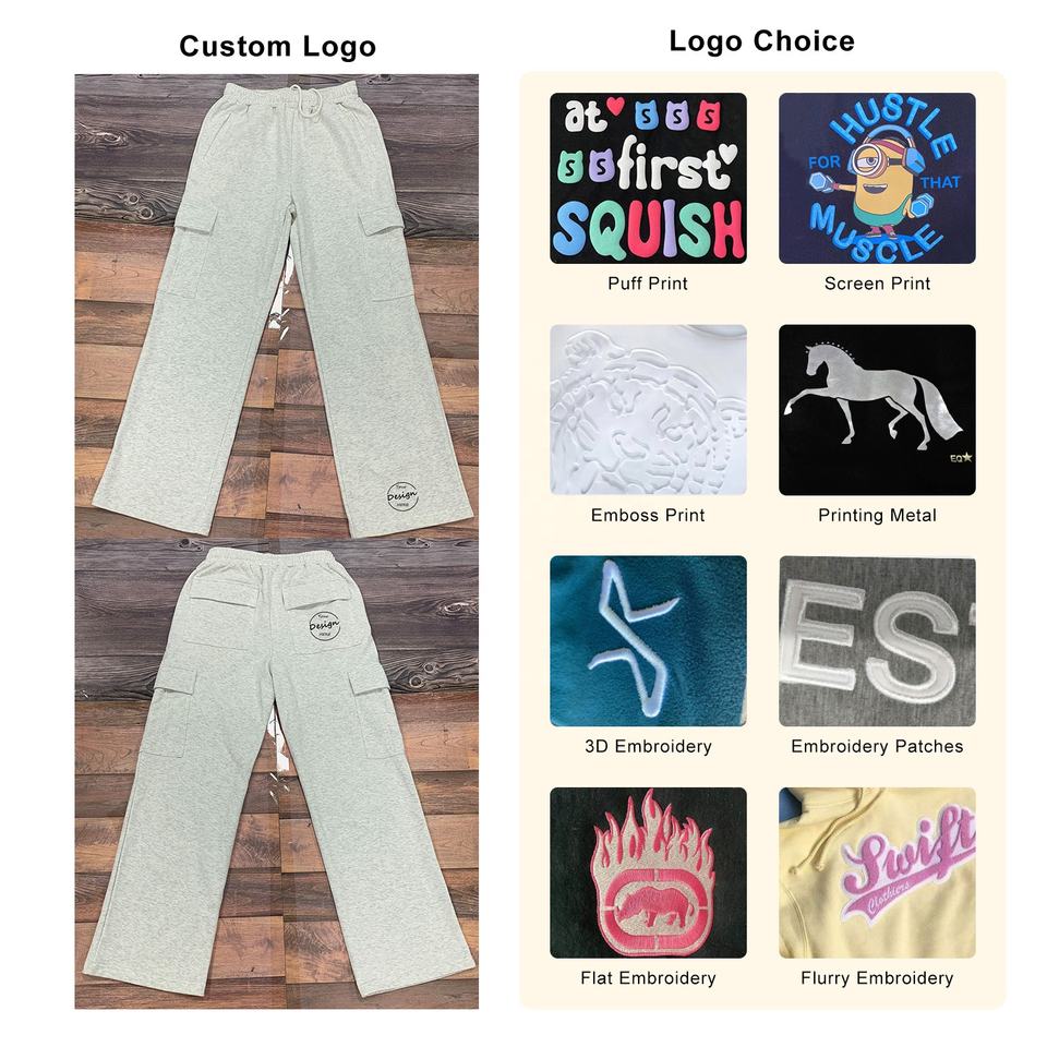 Women's 360Gsm Heavyweight Cargo Joggers Custom Embroidered Classic Loose Running Sweatpants Solid Color for Winter