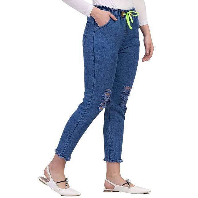 Wholesale Custom Women Elastic Stretch Breathable 100% Cotton High Waist Solid Color Jeans Trouser Denim Pants Fashionable
