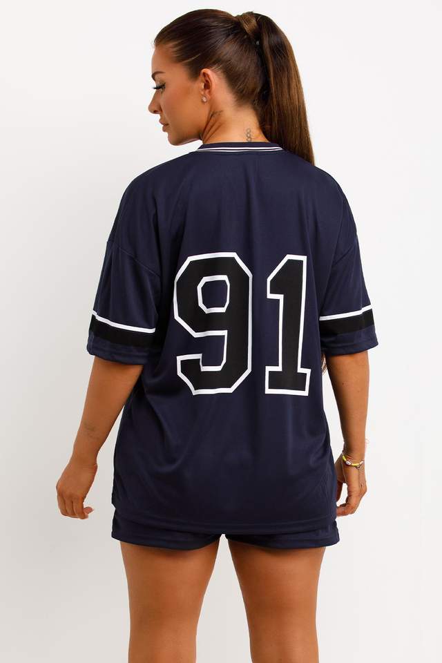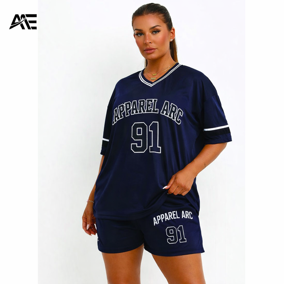 Wholesale Custom Women Oversized Jersey Shorts Set V Neck Sports Style Number Print Streetwear OEM ODM Supplier
