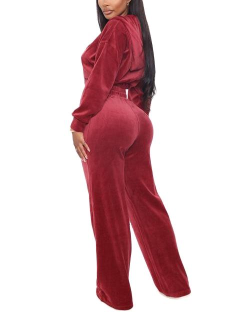 Wholesale Custom Women Velvet Zip up Hoodie Tracksuit Set Womens Jogger Sets Crop Top Pants Two Piece Set 2026