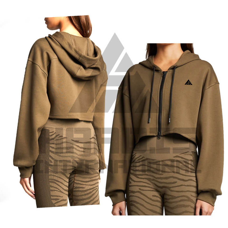 Wholesale Custom Women's Long Sleeve Zip Hoodies Sweatshirts Casual Workout Crop Tops with Size & Color Customization for Winter