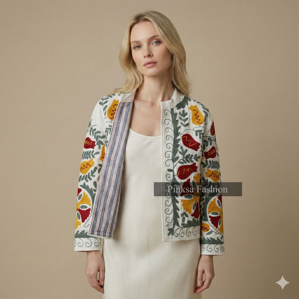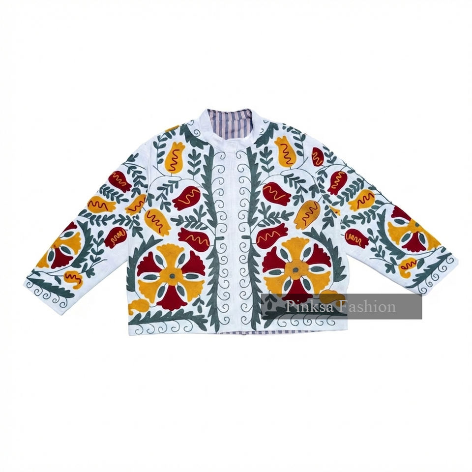 Wholesale Custom Womens Ethnic Floral Embroidered Winter Velvet/Cotton Padded Short Coats Traditional Artisan Inspired