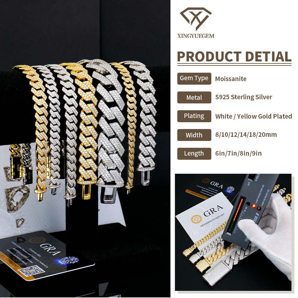 Wholesale Custom Men's Ice GRA Certified Hip Hop Jewelry 925 Sterling Silver VVS Moissanite Cuban Link Chain Bracelet Gift Party