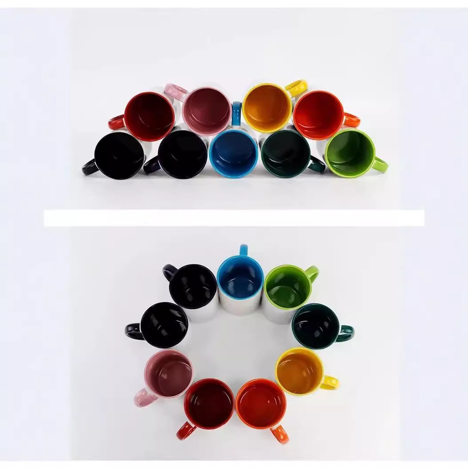 Wholesale Custom pattern 11oz Sublimation Ceramic Mug Inside Colorful Handle Color Mugs Koi