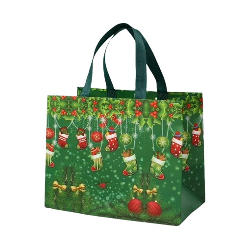Wholesale Customizable Christmas Reusable Laminated Non-Woven Tote Bags Recyclable Shopping Gift Bags Made in Vietnam
