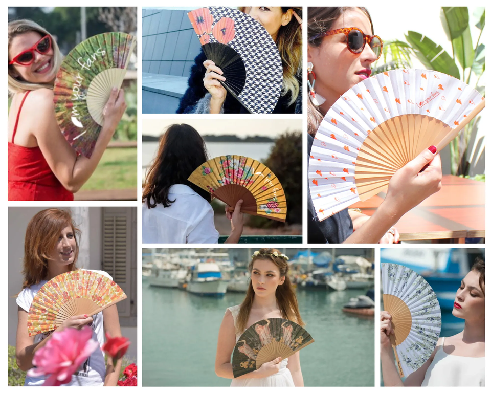 Wholesale Customizable Electric Rechargeable Mini Large Bamboo Folding Hand Fans for Weddings New Year's Sublimation Painted