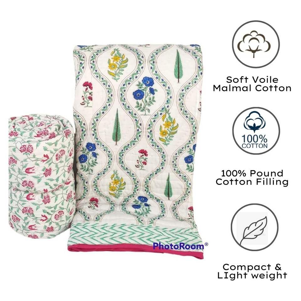 Wholesale Customizable Premium Traditional Seasonal Hand Block Print Jaipuri Floral Double Bed Quilt Cotton Bed Couch for