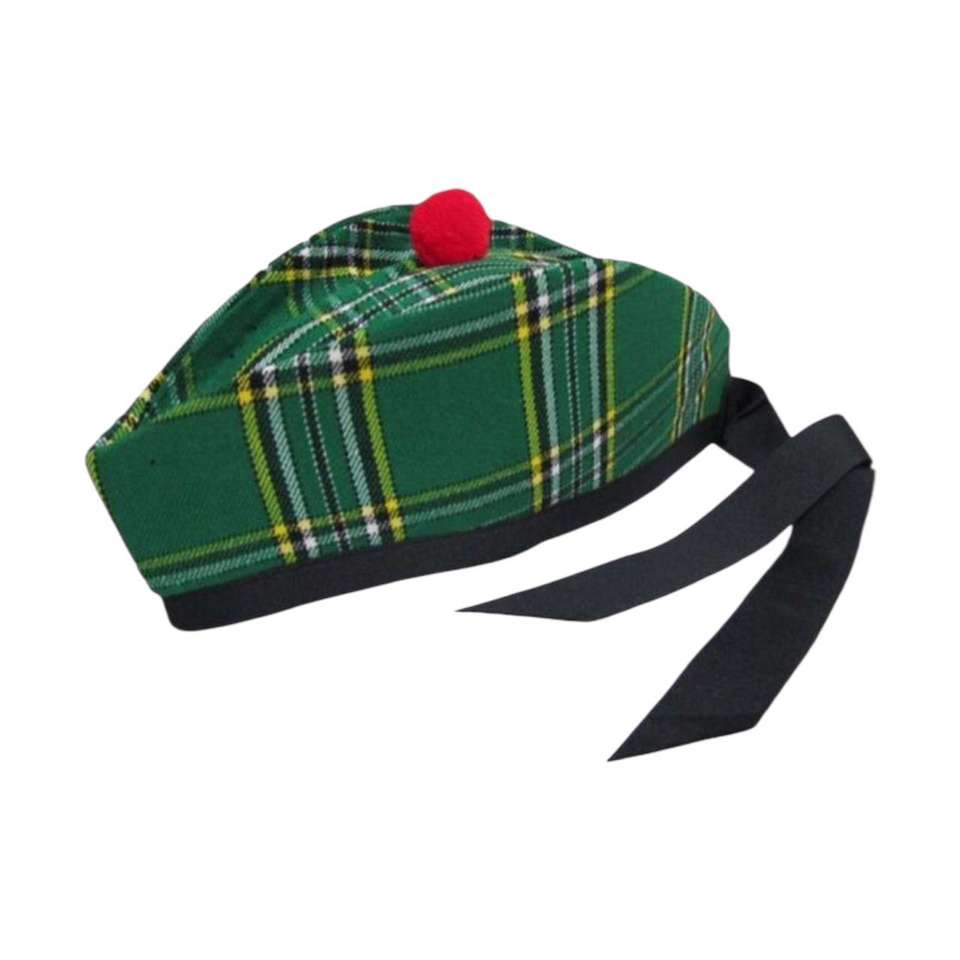 Wholesale Customizable Requirement Logo High Quality Glengarry Hat with Leather Trim and Royal Stewart Tartan Ribbon Caps Hats
